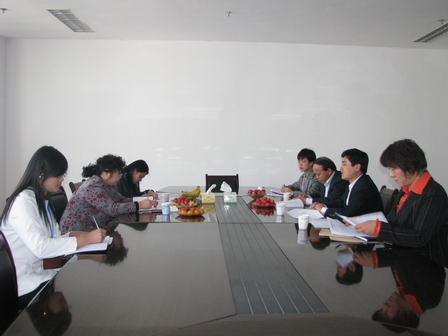 上圖為臨沂市財政局劉文秀科長,科技局謝瑩科長等領導在二樓會議室座談時的情景