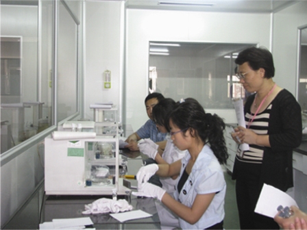 比賽分理論和實際操作兩部分。在實際操作部分,公司各個部門的檢驗人員現(xiàn)場操作并由評委現(xiàn)場打分。最后根據理論和實際操作兩部分分數由評委選拔出參加山東醫(yī)藥行業(yè)職業(yè)技能大賽選手。
