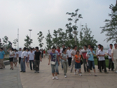 上圖為新入職員工參觀臨沂鳳凰廣場時的情景