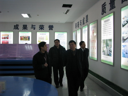 上圖為山東省統計局副局長左振華(前排右一),統計局貿易處處長侯愛平(后排左一),羅莊區委常委、常務副區長魏九成(后排右一)一行參觀公司展廳時的情景。