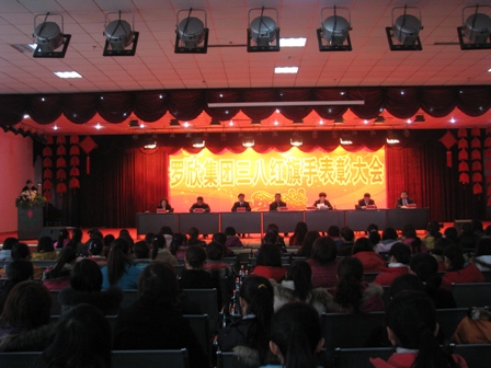 三八紅旗手表彰大會現場 三八紅旗手合影 氣氛熱烈的拔河比賽 搶凳子比賽 三人協作跑
