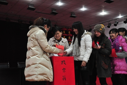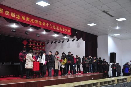 我公司選民熱情高漲踴躍參加,不到八點有些人還沒來得及吃早飯就冒著嚴寒提前趕來等候選舉大會開始,會場內(nèi)秩序井然,每個人都非常嚴謹?shù)耐冻隽俗约旱纳袷サ囊黄薄4髸埩肆_莊區(qū)領導督查指導確保選舉的整個過程透明化、民主化、嚴肅化和有效化。