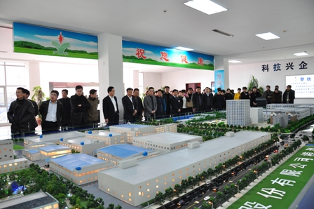 上圖為市委黨校第三十一期鄉(xiāng)鎮(zhèn)干部進(jìn)修班學(xué)員一行觀看公司布局沙盤模型的情景