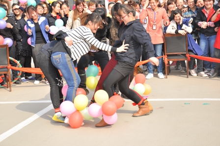 上圖為踩氣球比賽活動現場