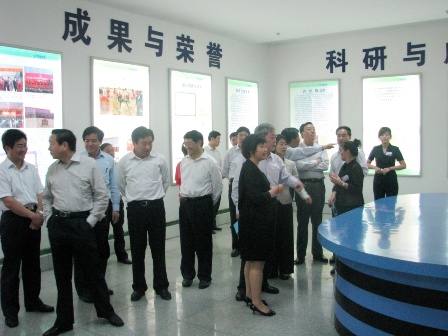 圖為“科技列車沂蒙行”領導、專家一行參觀公司展廳時的情景