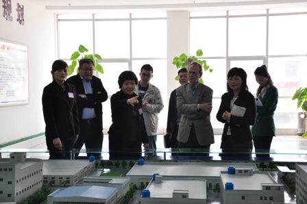上圖為 Mr.Hanspeter Misteli(前排右二)一行參觀公司展廳時的情景