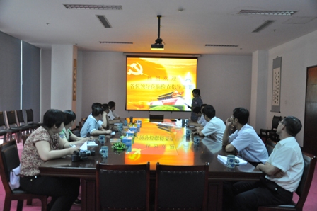上圖為德州市臨邑縣委組織部一行在聽取公司黨建工作報告