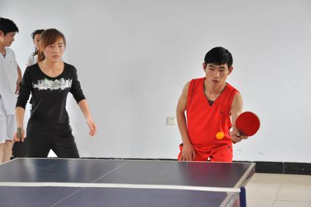 上圖為乒乓球比賽的緊張場面